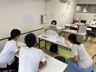 オリジナルの手縫いマスクを作ってます 2020/08/18 本日、孫田先生(そろばん塾の先生)による、オリジナル手縫いマスク教室を開催させて頂きました! はじめは、手縫いで自分でできるのかと不安でしたが 孫田先生の素晴らしい指導のおかげで、楽しくステキなオリジナルマスクを手縫いで完成することができました! 参加したみなさん、大変満足されていました! アソーラこども食堂